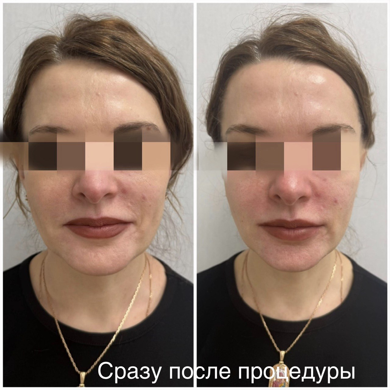 Через некоторое время после сеанса начинается постепенное усиление эффекта: кожа становится плотнее, морщины разглаживаются, контур лица восстанавливается. Максимальный результат наблюдается через 3-6 месяцев после сеанса и сохраняется до 2-х лет.